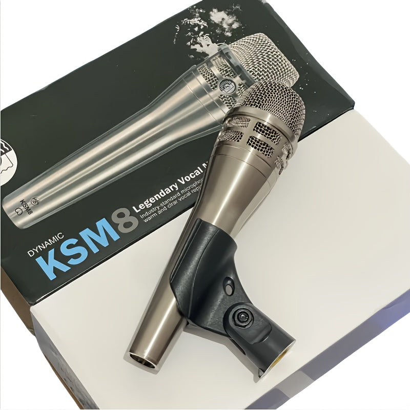 KS-M8 Micrófono dinámico de alta versión de metal plateado, de grado profesional, para canto en escena, vocal, grabación de estudio, actuación, discurso, regalo perfecto para músicos.