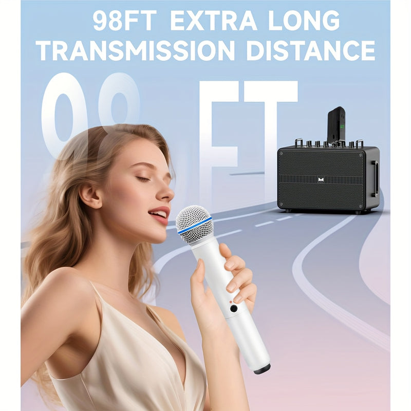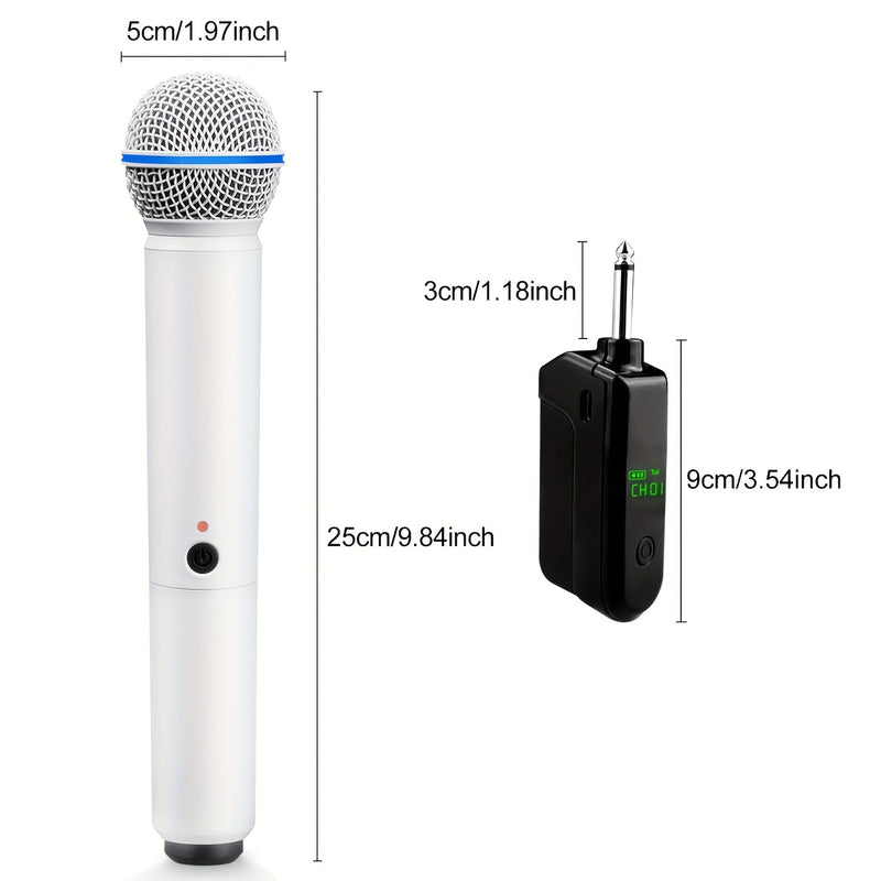 Micrófono blanco de Navidad Heikuding - Diseño blanco puro/pintado, inalámbrico 2.4GHz, USB y batería de litio recargable, clip y soporte, conector de 6,35 mm, compacto para decoración navideña y de vacaciones, decoración navideña, ideal para Navidad.