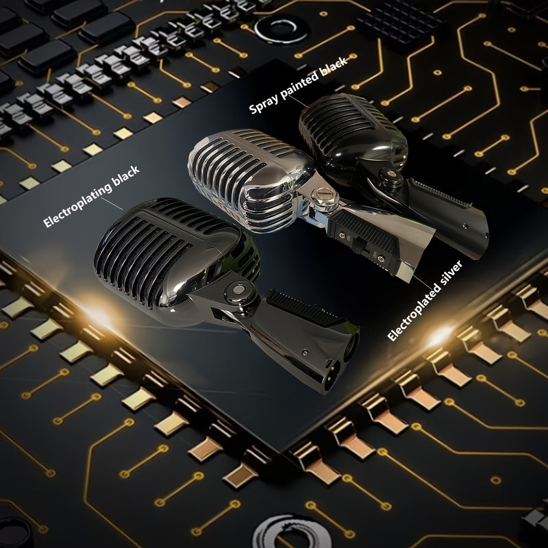 Microfono Vocal Dinámico Retro Clásico BT-55 - Negro, Aleación de Aluminio, Jack de 6.35mm, Ideal para Karaoke y Grabación, Fondo de Arte Mural Temático Musical Vibrante, Utilizado para Cantar en Karaoke, Estilo Retro