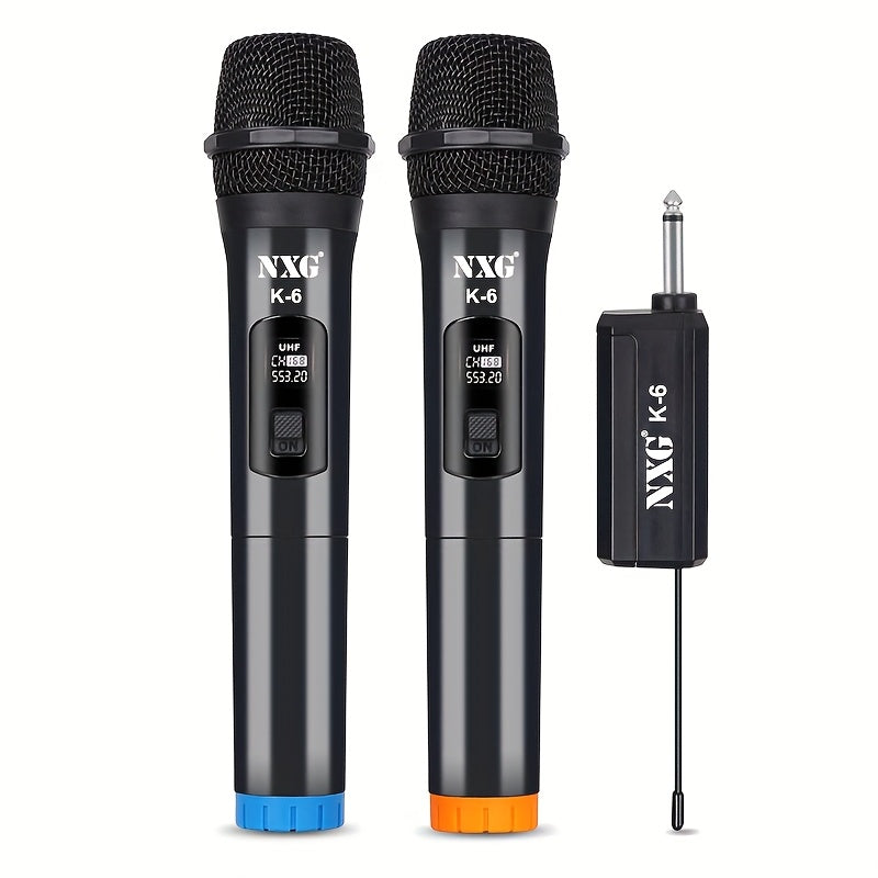 Micrófonos inalámbricos NXG K-6, micrófonos para karaoke, sistema dinámico de mano, receptor recargable, ideal para fiestas, iglesias, reuniones, bodas y escenarios, incluye 2 micrófonos