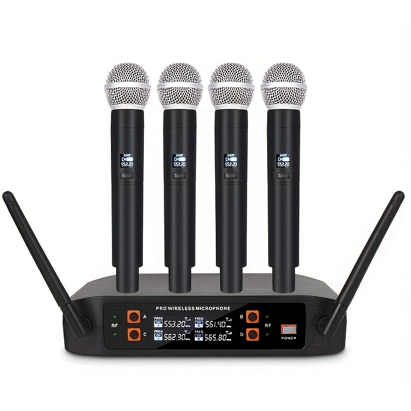 Sistema de micrófono inalámbrico profesional NXG - 4 micrófonos inalámbricos de mano, receptor portátil UHF, ideal para DJ, karaoke, actuaciones en escena, bodas y conferencias, con conector de 3,5 mm, material de resina ABS, equipo de actuación en escen