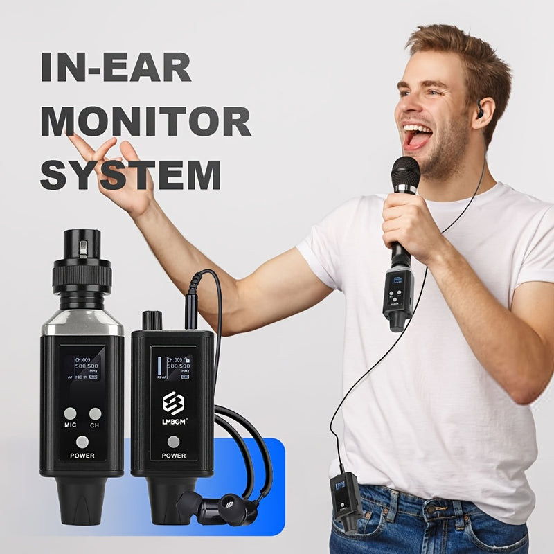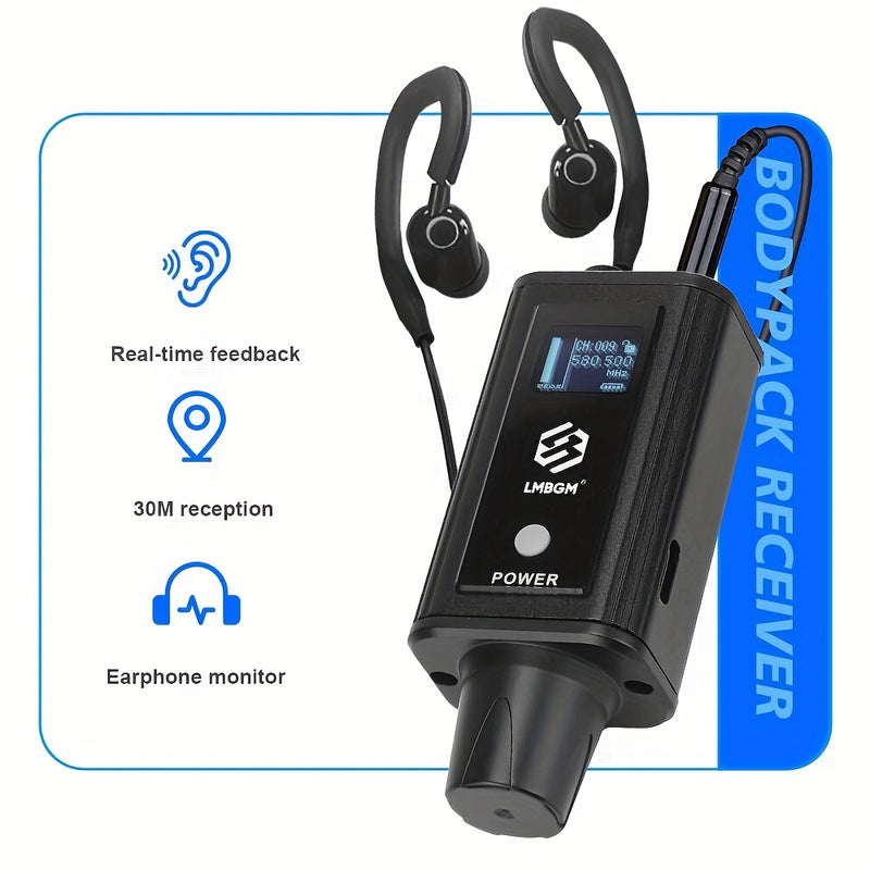 Sistema de Monitoreo Intrauditivo sin varillas LMBGM con 1 Canal y Auriculares Tipo Bodypack para Escenario, Estudio, Actuaciones, Karaoke y Otros Escenarios