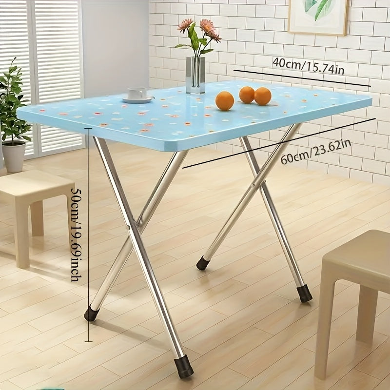 1 pieza de mesa plegable portátil - Madera densa, marco de metal, no necesita energía - Ideal para acampar al aire libre, barbacoas, dormitorios, restaurantes y uso en la oficina - Diseño compacto y duradero, muebles para exteriores | Patrón rayado | Mes