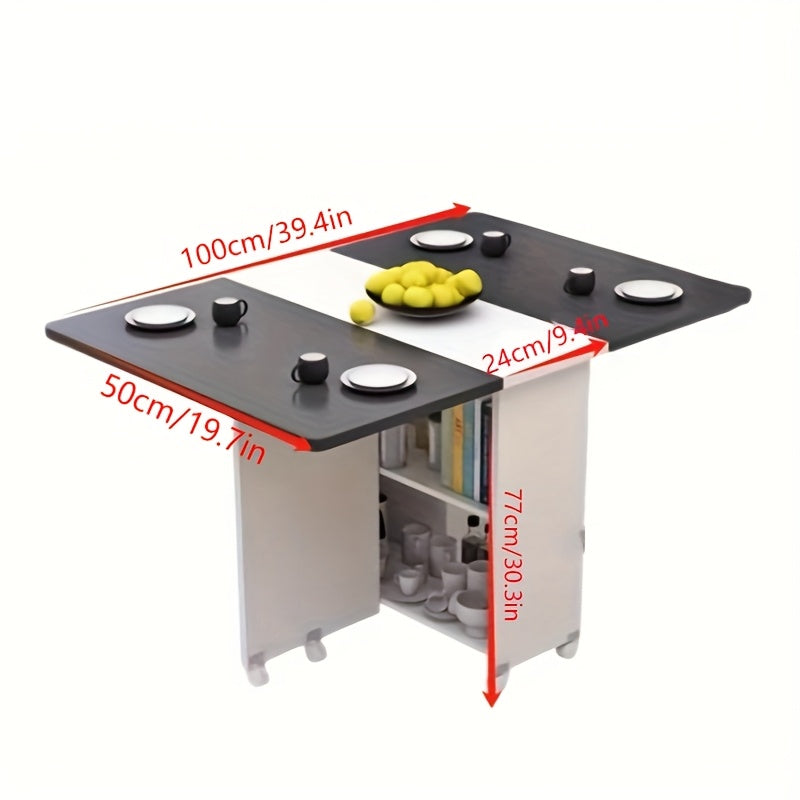 1pc Mesa de Comedor Plegable Cuadrada 100cm x 50cm x 77cm & Escritorio Móvil - Diseño Minimalista Moderno con 6 Ruedas, Mesa Retráctil para Ahorrar Espacio en Cocina, Comedor, Oficina en Casa - Construcción de Madera de Pino Sólido, Muebles de Oficina Du