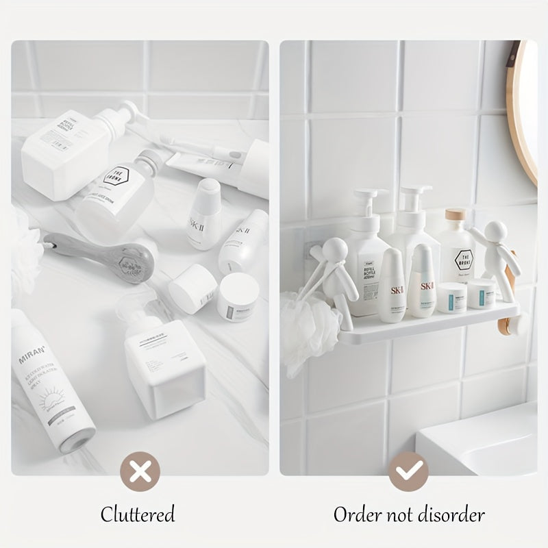 2/3/4/6 piezas, linda estantería de almacenamiento para pared para hombres pequeños de color blanco/gris - sin taladrar, instalación fácil, fuerte y duradera, muy adecuada para la organización del baño y la cocina, almacenamiento de cosméticos, decoració