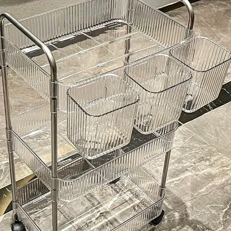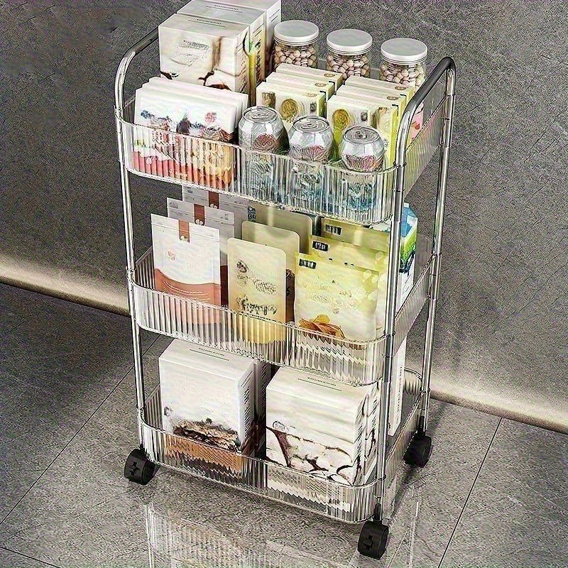 Carrito de almacenamiento acrílico giratorio de 3 niveles, ideal para baño, cocina y sala de estar, caja de pañuelos transparente multicapa con 3 marcos de aleación, diseño giratorio de 360°, carrito portátil, fácil acceso, construcción moderna en plásti