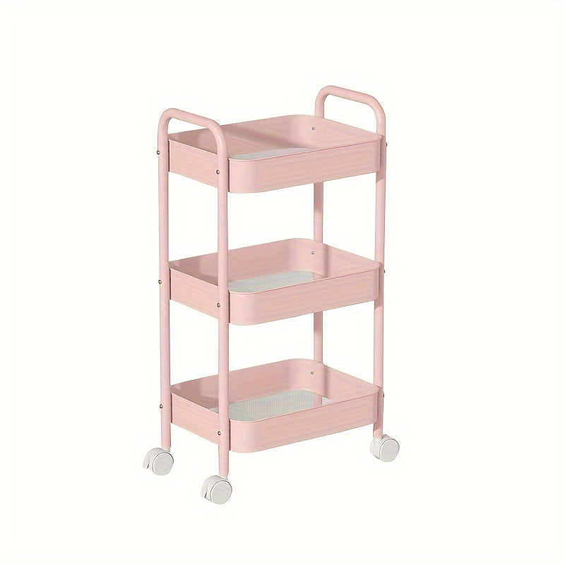 Carrito de almacenamiento metálico rodante de 3 niveles para champán, organizador versátil para cocina, baño, dormitorio – Reposabrazos suave, canastas de malla transpirable, estantes deslizantes, instalación en piso, organizador de dormitorio, canasta c