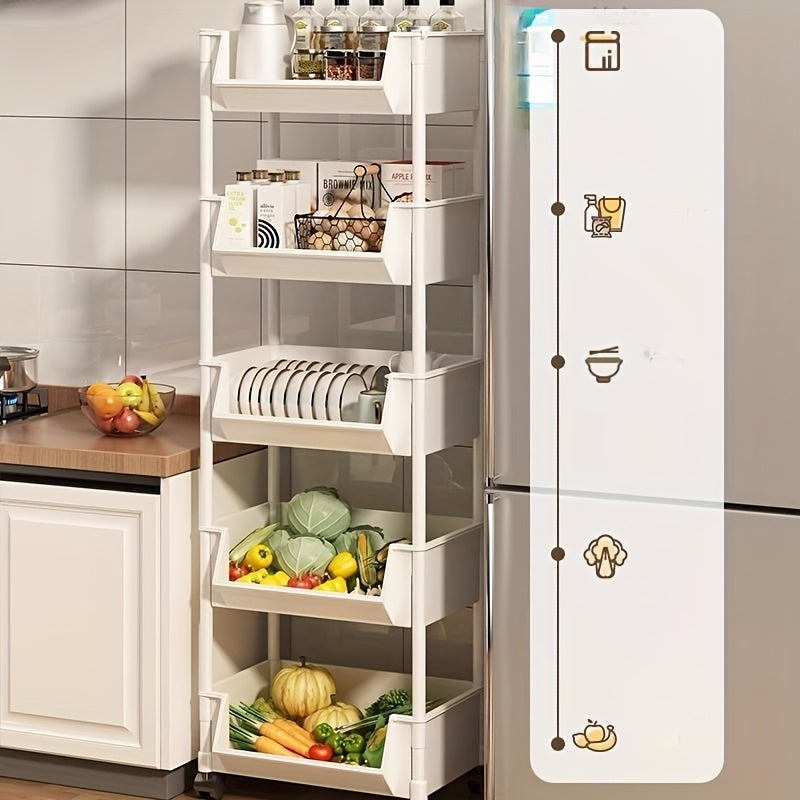 Carrito de Almacenamiento Rodante de 5 Niveles con Ruedas - Organizador Multifuncional de Plástico Duradero para Cocina, Sala de Estar y Hogar - Fácil Montaje, Sin Necesidad de Energía, Ideal para Aperitivos, Libros y Productos Frescos, Carro de Cocina