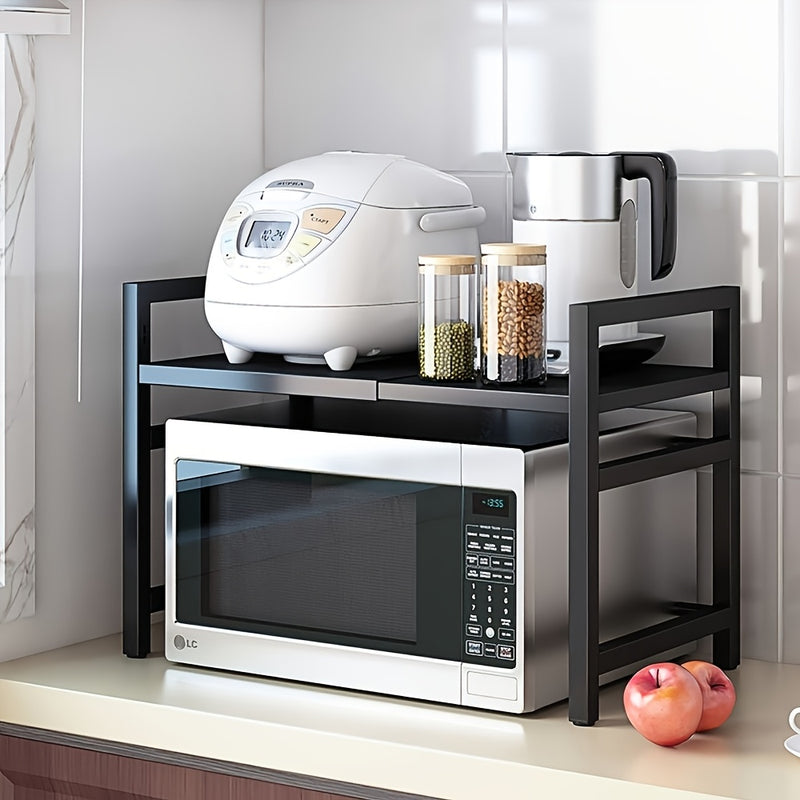 Carrito de cocina expansible de 2 niveles de acero inoxidable con 6 ganchos - Ideal para microondas, electrodomésticos y almacenamiento de especias - Perfecto para la organización de la cocina moderna, solución de almacenamiento de cocina | Carrito de co