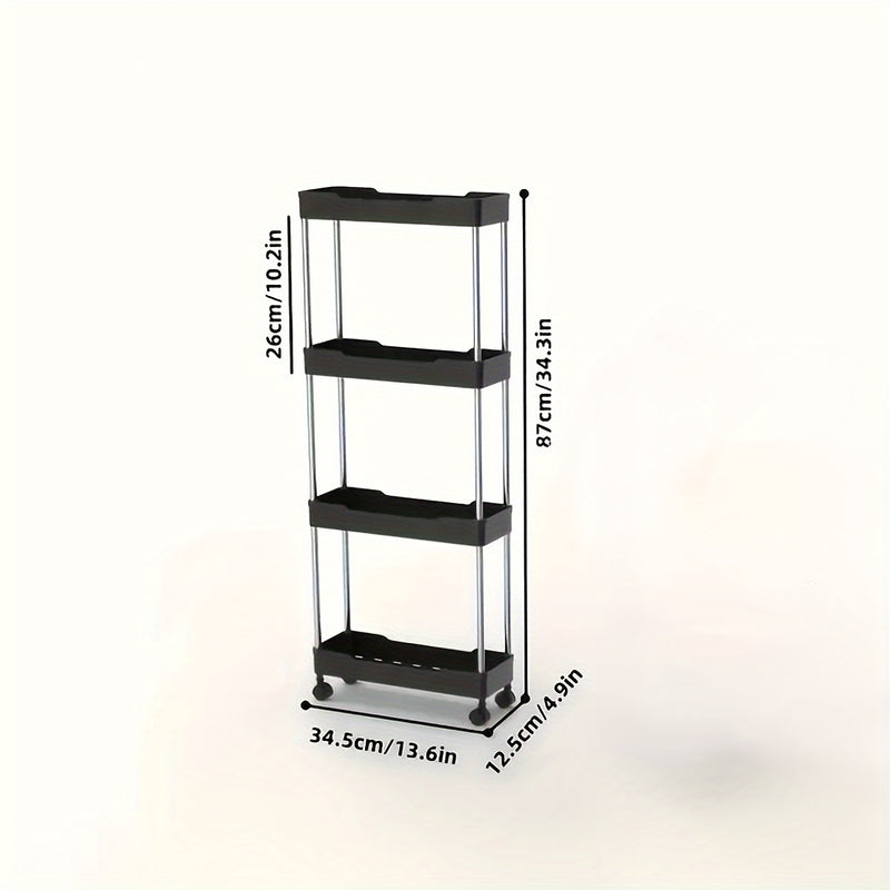Carro de almacenamiento de plástico de 4 niveles con ruedas, organizador de espacio para baño, cocina, sala de estar - Carro de utilidad delgado con ruedas, sin ensamblaje y sin batería