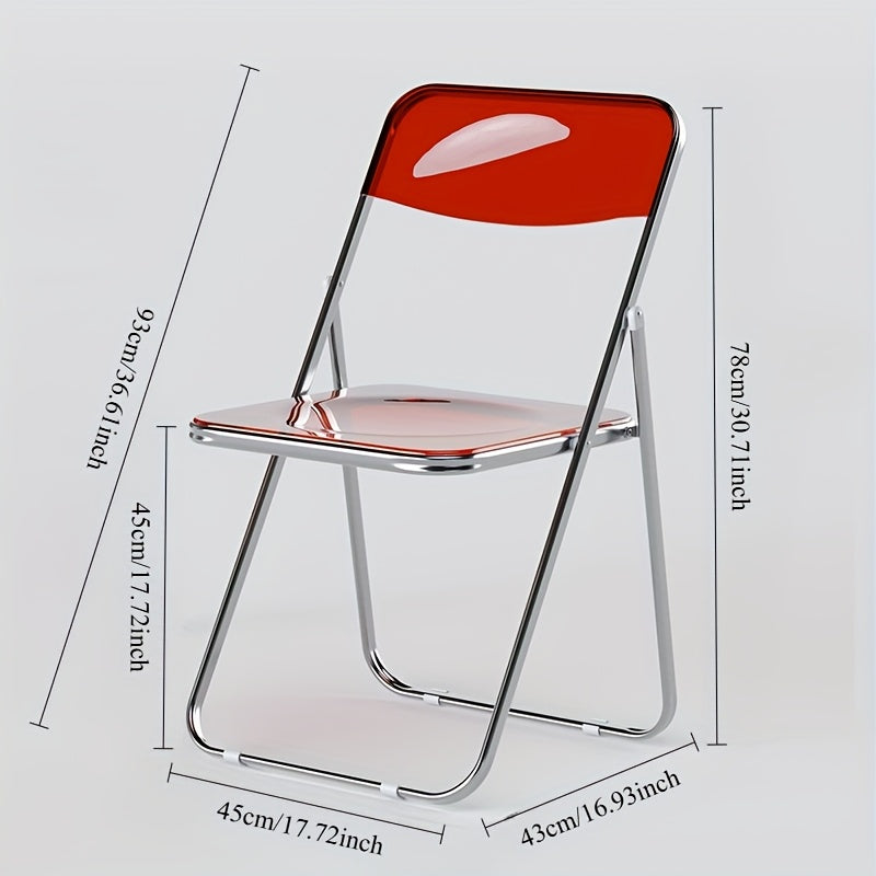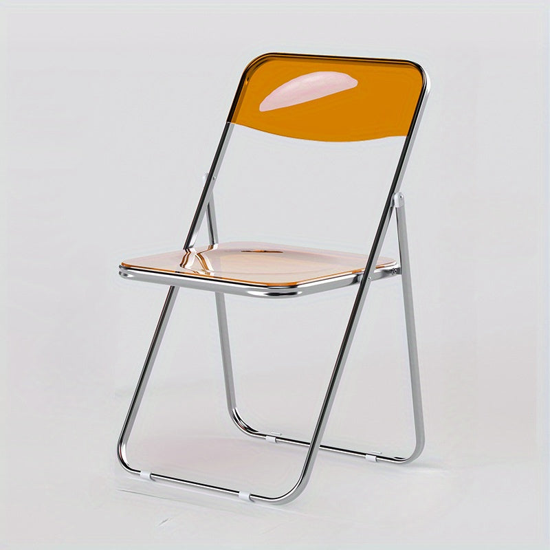 Silla Plegable de Acrílico y Metal con Diseño de Espalda Cruzada - Estilo Moderno Minimalista Transparente y Naranja, Ligera y Duradera para Comedor en Casa, Tiendas Minoristas, Cafeterías - Fácil de Limpiar
