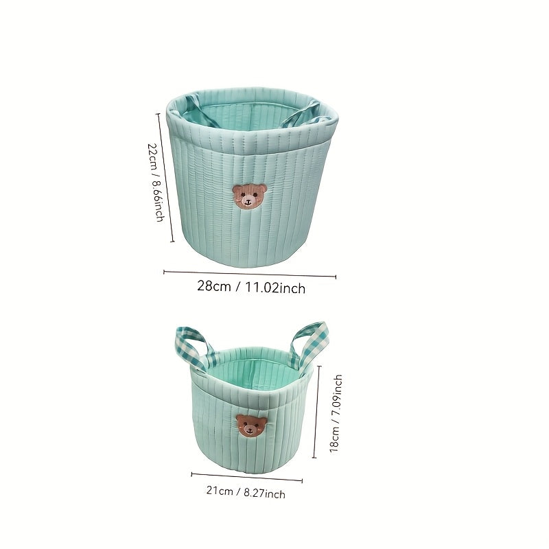 Bolsa de almacenamiento de juguetes acolchada beige con parche de oso - Poliéster duradero, múltiples compartimentos para almacenamiento organizado, ideal para pañales, ropa y accesorios, bolsa de pañales | Textura acolchada | Bolsa estructurada