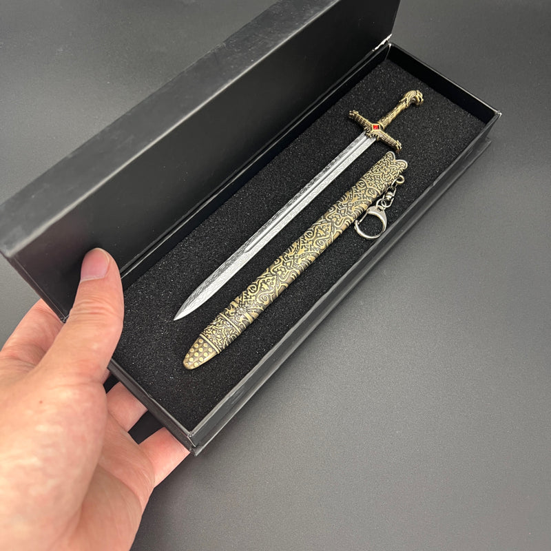 Estuche de exhibición de espada negra de lujo - 10,6" (26,49 cm) caja de almacenamiento de armas antiguas con diseño ornamentado, caja de regalo de cartón duro para cumpleaños, Navidad, Halloween y fiestas, regalo coleccionable, ideal para Navidad