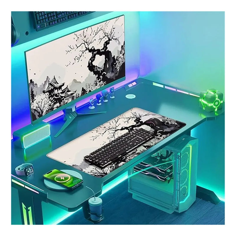 Alfombrilla de mouse de anime japonés, color blanco, beige, XXL, alfombrilla para teclado para juegos, grande, flor de cerezo, escritorio completo, computadora portátil larga
