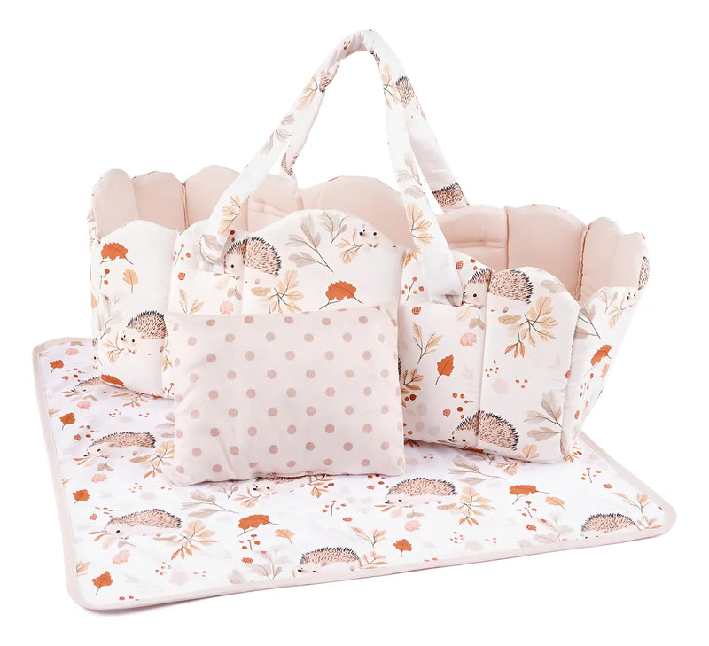 BABESIDE Juego de 3 piezas de moises para munecas de bebe con ropa de cama para munecas de 17 a 22 pulgadas, bonita cuna de muneca con estampado de animales con manta de muneca y almohada para accesorios realistas de muneca recien nacida, color blanco roto - El paquete incluye: - - - 1 moises de muneca de bebe, 1 manta de muneca de bebe, 1 almohada de muneca de bebe,