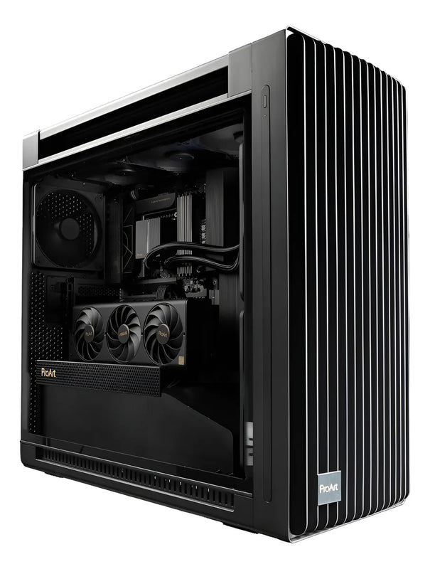 Flujo de aire superior rejilla del panel frontal de 15,5 mm con 45 de porosidad, dos ventiladores delanteros extragruesos de 200 x 38 mm para una máxima entrada de aire y un extractor trasero de 140 mm Térmicas superiores Dos deflectores envían el aire entrante hacia la placa base y otros componentes internos para optimizar las temperaturas Concentrador de ventilador incorporado para la gestión de ventiladores Amplio espacio admite un radiador de 420 mm para refrigeración AIO o bucles de refrigeración líquida personalizados y la tarjeta gráfica más robusta obtiene un amplio espacio para montaje horizontal o vertical Amplia ES pestillo Power Lock y control PWM de 2 secciones Puerto USB tipo C de 20 Gbps Indicador de polvo IR en el panel frontal recordatorios oportunos para limpiar el filtro y mantener el flujo de aire de primer nivel Diseño amigable para el creador montaje de tarjeta gráfica sin herramientas, soporte para tarjeta gráfica integrado, ruedas incorporadas para facilitar el transporte, concentrador de ventilador incorporado en una elegante estética ProArt