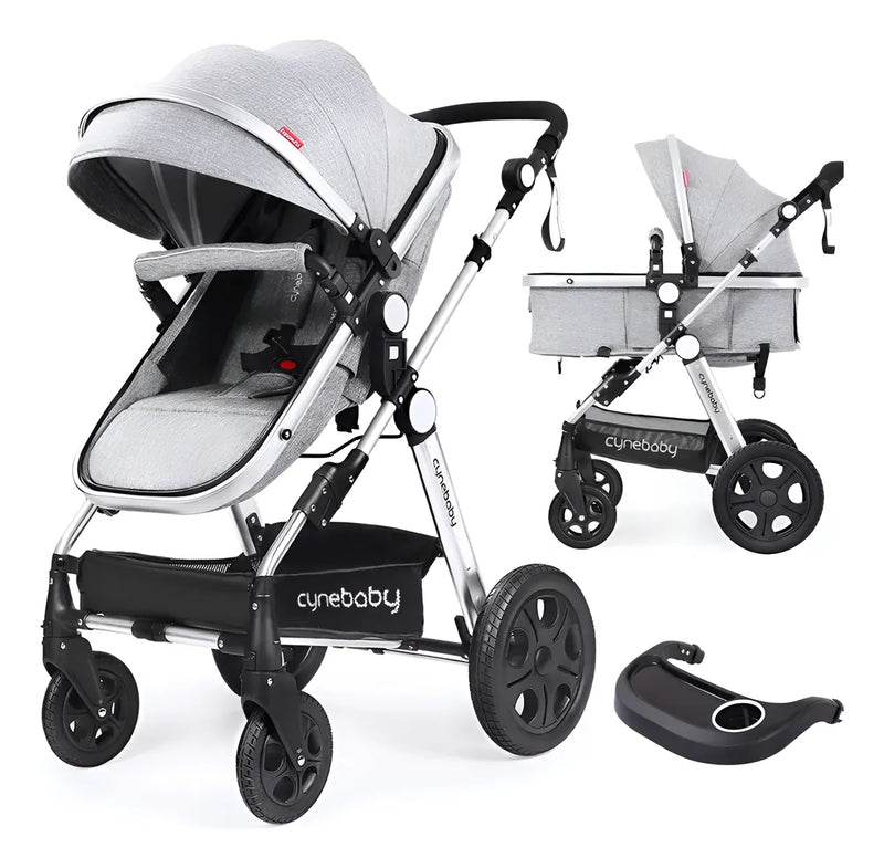 Increíble kit.El cochechito está equipado con accesorios para el carrito, bandeja de comida, cálida cubierta de pies, soporte para tazas, correa de seguridad para asiento de paseo, cojín para el asiento, mosquitero.