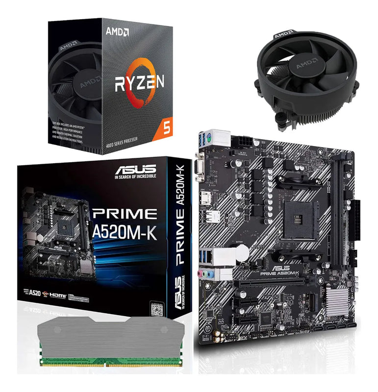 Combo Board ASUS PRIME A520M-K + Procesador AMD Ryzen™ 5 4500 + Memoria DDR4 8GB 3200 MHz Blindada