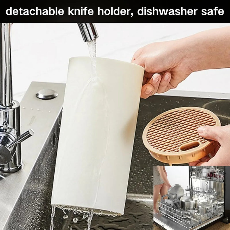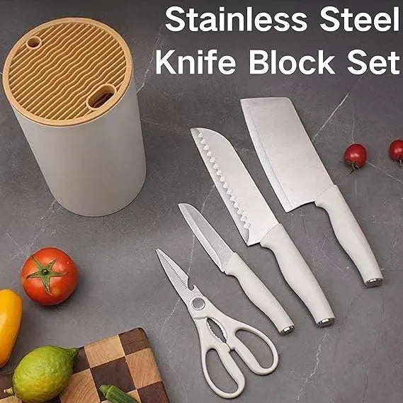 Bloque de cuchillos elegante y funcional: el bloque de cuchillos incluido proporciona una solución de almacenamiento segura y conveniente para tus cuchillos. Los mantiene organizados y de fácil acceso, ahorrando espacio valioso en tu cocina.