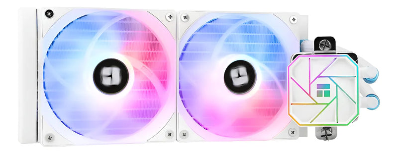Sistema de Enfriamiento Liquido Color Blanco TA 240 mm para procesadores (CPU PC) Compatible con Sockets de última generación Intel (LGA 1700) y AMD (AM5) y anteriores como LGA 1200 y AM4, con sistema de iluminación LED ARGB
