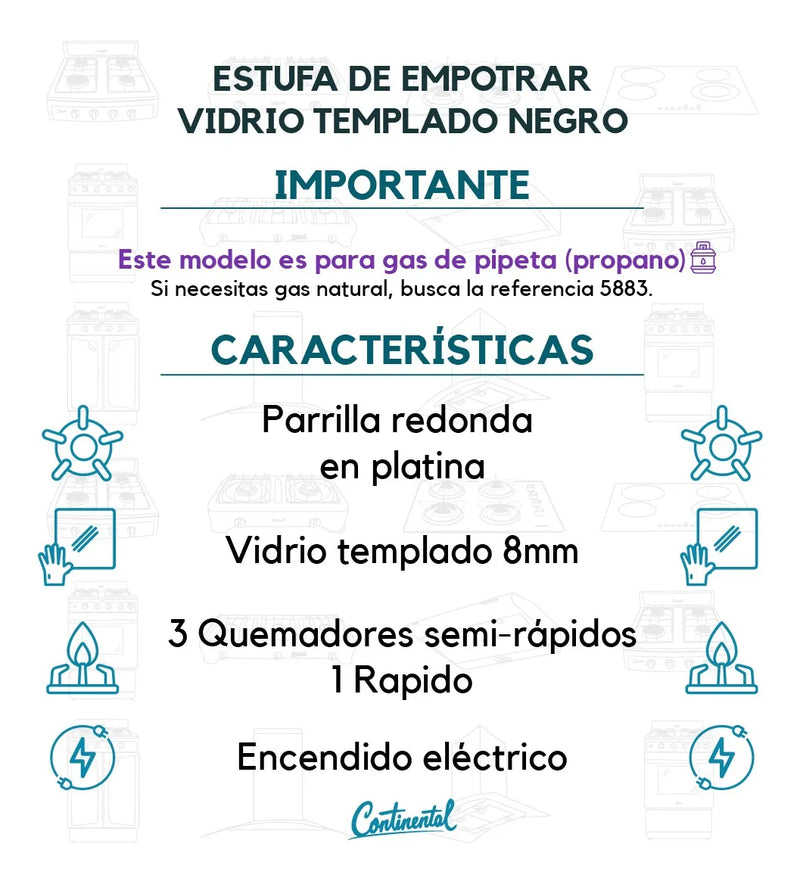 Estufa De Empotrar Vidrio Templado Gas Propano 5890 Negro