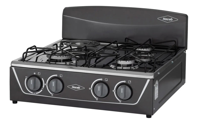 Con tres quemadores de gas y una resistencia tubular eléctrico, esta estufa permite preparar múltiples alimentos simultáneamente, optimizando el tiempo de cocción.