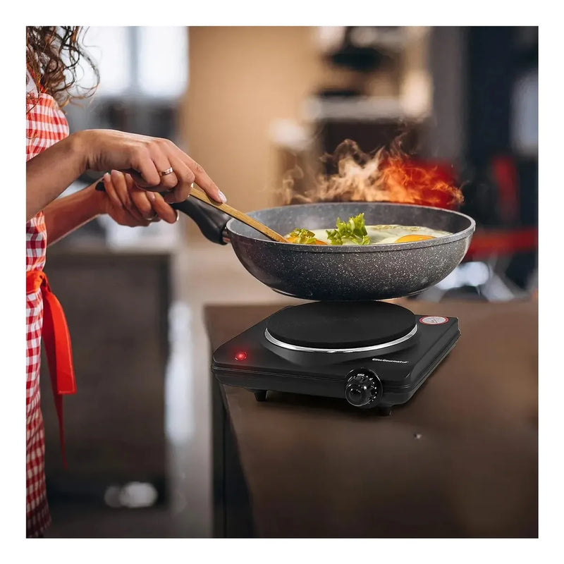 Disfruta de la practicidad y eficiencia de esta estufa eléctrica de un solo puesto, ideal para preparar tus comidas en cualquier lugar donde cuentes con conexión eléctrica. Su diseño compacto y ligero la convierte en la opción perfecta para espacios pequeños, oficinas, viajes o como complemento en tu cocina.