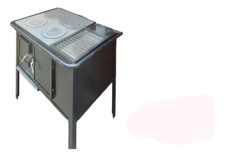 Estufa ecologica elaborada en angulo 1/2para las patas angulo 3/4 calibre 8 espaldar y laterales en colroll calibre 16 frente en alfagor en 16 puertas en marco en leñero y de horno marco angulo 3/4x8 con lamina alfagor parrilla en varilla de 6 milimetros buitron lamina galvanizada de 240 de alto horno en lamina galvanizada calibre 22 parrilla leñera en hierro fundido planchas en hierro fundido piso y lamina galvanizada y cenizero pintura liquida x fuera 11 ladrillos refractorios x estufa fabricacion con norma tecnica
