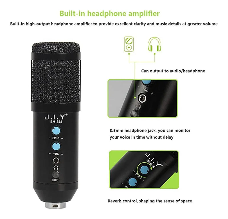 Grandioso Micrófono Condensador Usb Con Trípode Color Negro