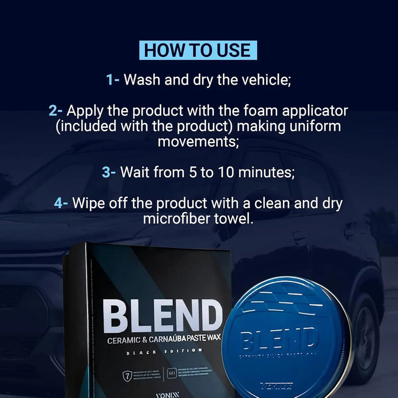Aplicación Sencilla: La cera de pasta Blend se aplica sin esfuerzo, asegurando una cobertura uniforme para hasta 25 vehículos.