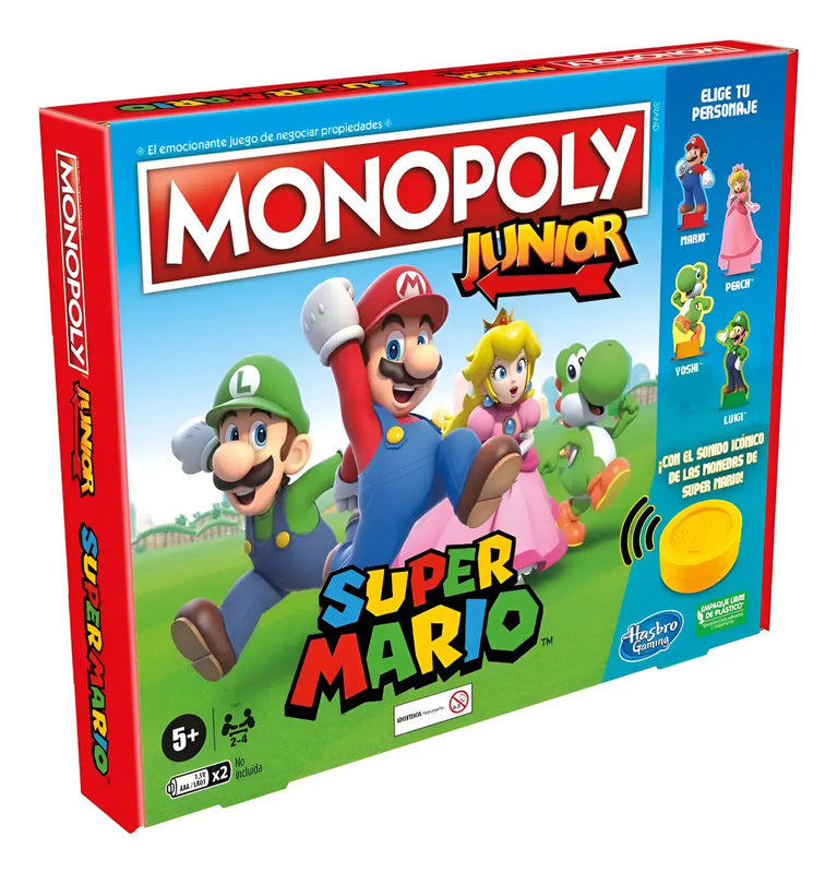 Presentamos el juego de mesa Monopoly Junior Edición Super Mario de Hasbro, una experiencia divertida y emocionante para toda la familia. Diseñado para pequeños jugadores a partir de 6 años, ofrece la oportunidad de explorar el colorido mundo de Super Mario mientras aprenden a manejar dinero y desarrollan habilidades estratégicas. Ideal para 2 a 4 participantes, este juego reúne a amigos y familiares en emocionantes partidas llenas de sorpresas.