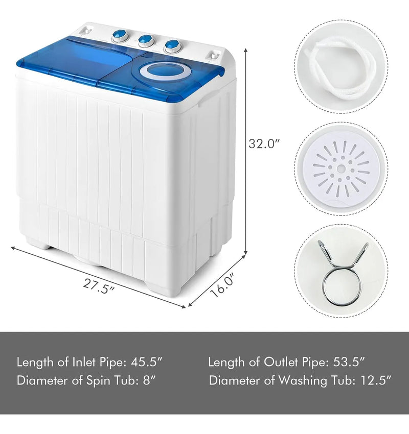 TRADUCCIÓN AL ESPAÑOL DE: COSTWAY, Lavadora Compacta de Doble Tina 26lbs, Combo de 18lbs y 8lbs con Temporizadores, Bomba de Drenaje Incluida, Lavadora Compacta para Hogar, Dormitorio, Apartamento (Azul+Blanco) lavadora portátil.