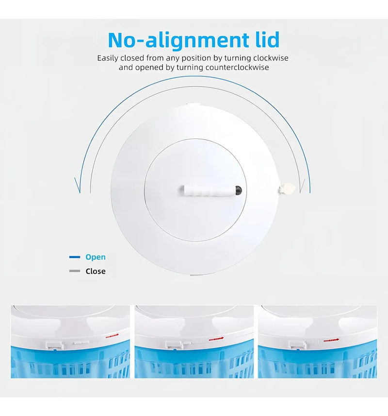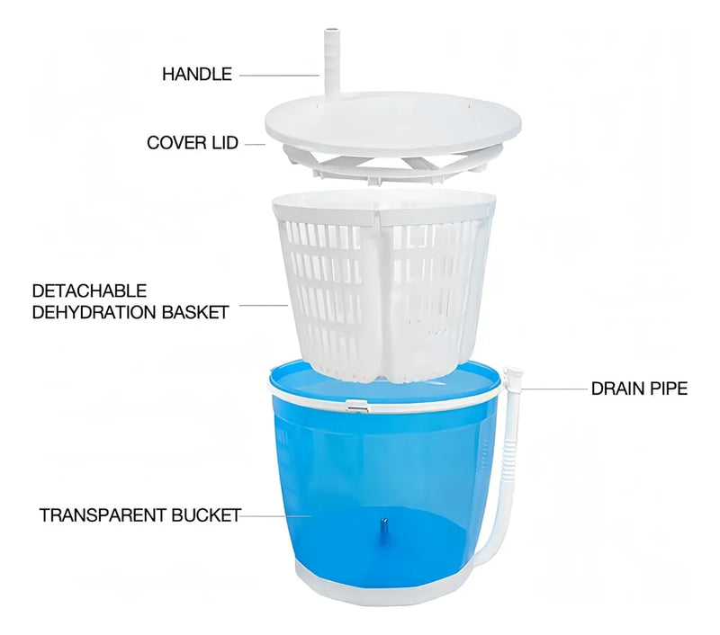 La lavadora y secadora de ropa portátil es adecuada para lavar y secar ropa interior, calcetines y otras prendas pequeñas, también aplicable a alimentos como frutas y verduras La lavadora y secadora de ropa portátil es accionada a mano, no eléctrica, capaz de lavar y secar ropa de 4.4 lbs/4.4 libras a la vez, altamente eficiente y ahorro de energía El combo de lavadora y secadora manual está equipado con una tapa sin alineación, se cierra fácilmente desde cualquier posición girando en sentido horario y abierto girando en sentido antihorario El combo de lavadora y secadora manual es ligero y portátil, con un diseño plegable, fácil de almacenar y transportar, ideal para RV, camping, viajes, apartamentos, dormitorios, etc. NOTA: La lavadora de viaje NO es aplicable para lavar y secar ropa grande o de invierno como jeans, abrigos, sábanas
