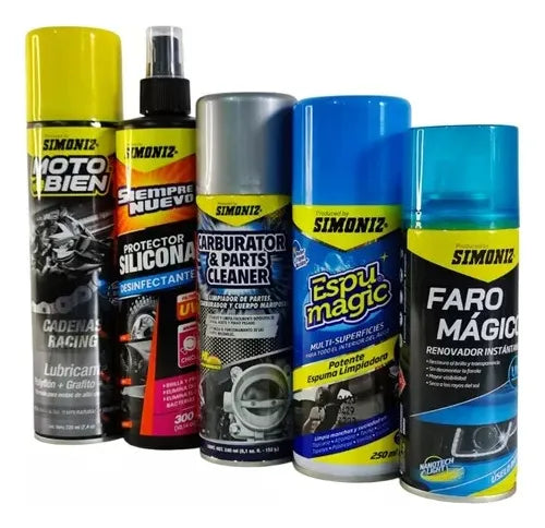 Combo Limpieza Motos Simoniz Espuma Lubricante Desinfectante