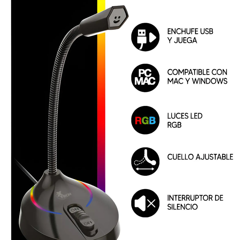 Microfono Gamer Xtech Glisser Xts 680 Usb Colores Dimm Color Negro
