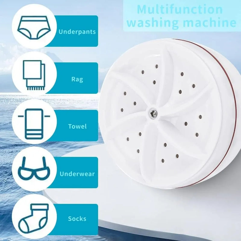 [Diseño] La limpieza ultrasónica y la limpieza de la turbina. La turbina funciona durante minutos, la vibración ultrasónica automática limpia durante un minuto, la interacción inteligente. Mini lavadora Indicado para personas que no pueden manejar máquinas grandes, otras personas a las que les gusta lavarse solas o que ahorran tiempo para no ir a la lavandería.