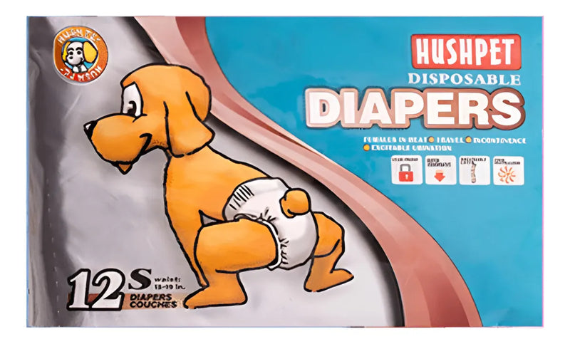 PAÑALES DIAPERS HUSHPET PARA PERROS Los Pañales desechables son una solución excelente para perros que sufren de incontinencia urinaria, hembras en celo, entrenamiento para cachorros o para viajar. Cada pañal tiene una barrera contra las fugas para evitar filtraciones. Además, tiene sujetadores con protección que se ajusta en la piel y cierres ajustables con cobertura en la cola para darle el mejor ajuste a tu perro.