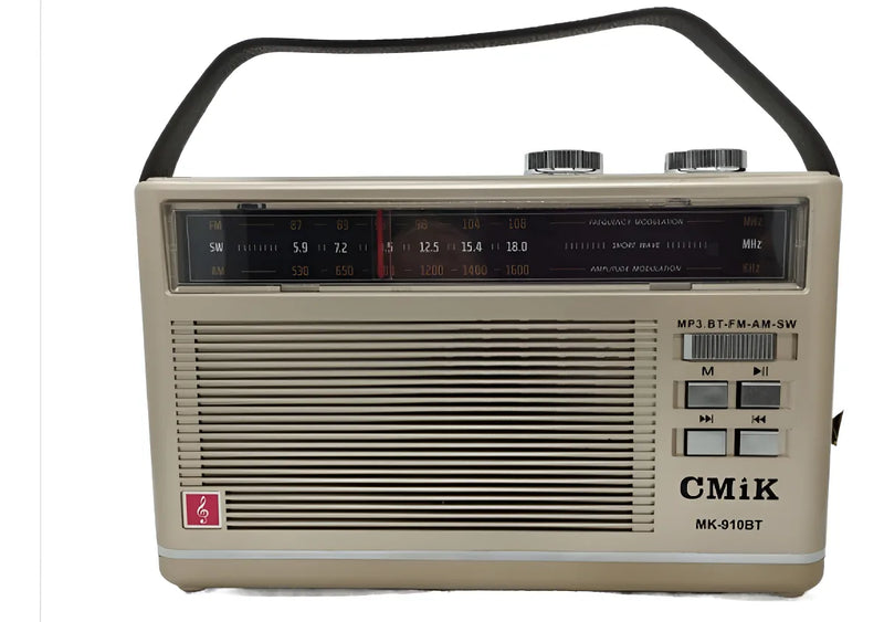 Gran Radio de tamaño mediano bonito elegante y muy versátil; reproductor de bandas AM/FM/SW con batería de litio recargable incorporada DE 1800 miamp o de uso con pilas o corriente con la mayoria de los cargadores de celular. Puede disfrutar de su emisora favorita, y MP3 por medio de memorias USB y Micro SD. Su diseño compacto y su correa lo hace fácil de guardar y transportar.