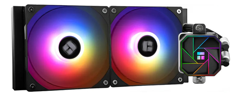 Mejor refrigeración: el enfriador incluye cabezal de bomba de cuarta generación, radiador de aluminio negro de 240 mm, tubo de agua con malla protectora y ventiladores ARGB de 120 mm. Ofrece baja vibración, alta disipación de calor, baja evaporación y larga vida útil en un sistema de enfriamiento todo en uno.