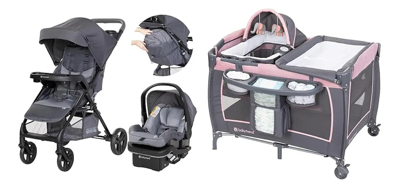 Componentes incluidos: cochecito, asiento de coche infantil, moisés, cambiador, centro de música