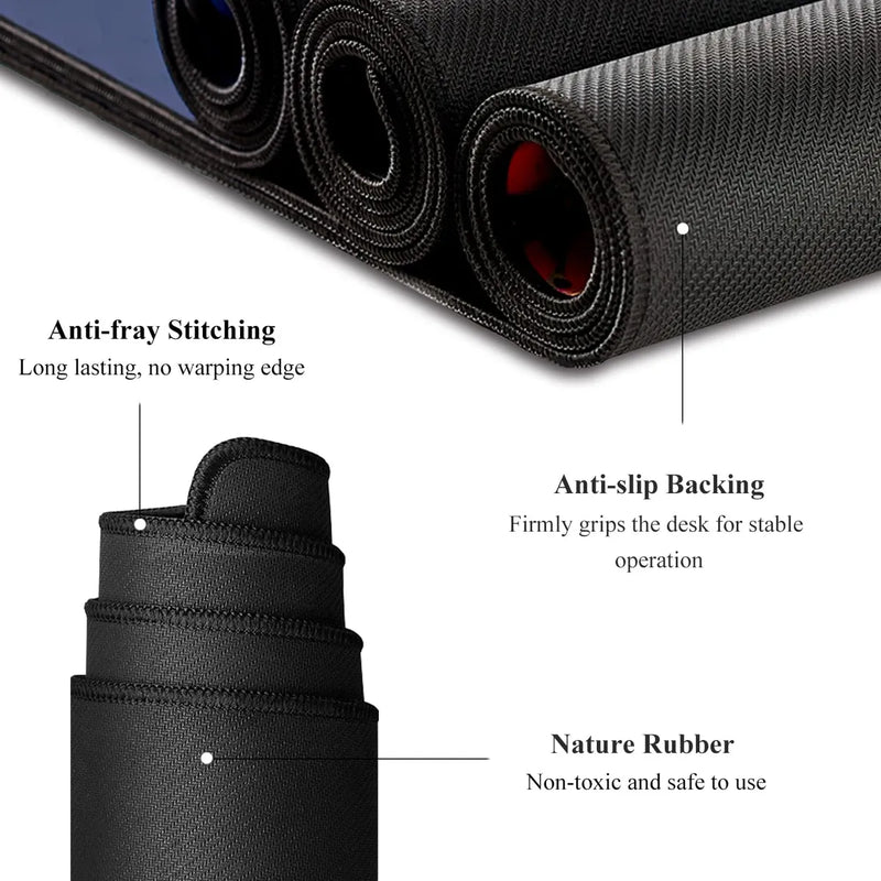 Acabado de alta calidad: hecho de goma natural gruesa, la alfombrilla XXL es suave y cómoda para trabajar. Con bordes cosidos a mano individualmente, no se deshilacha, deforma ni se desprende en un uso prolongado. Certificado ROHS, no tóxico y seguro de usar