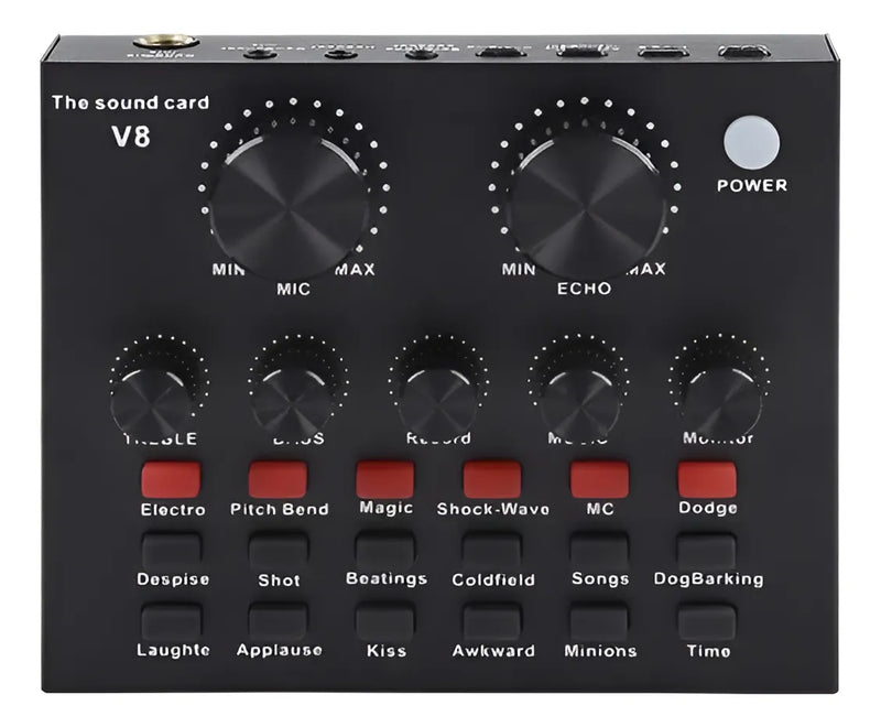 V8 - Tarjeta de sonido en vivo, USB externo V8, grabación de karaoke, mezclador de audio móvil, transmisión en vivo, tarjeta de sonido KTV para transmisión en vivo, canciones K, grabación, chat de voz.