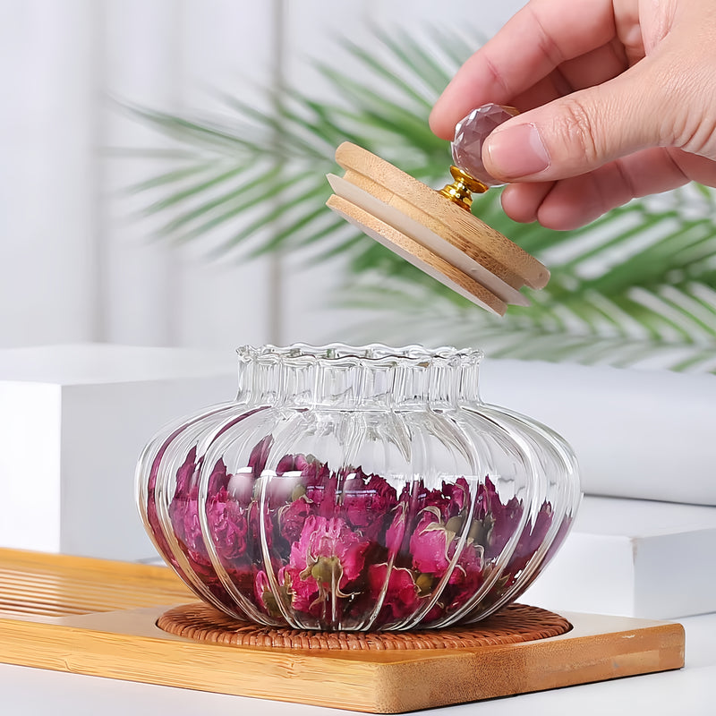 2 piezas, Jarrón de vidrio con diamantes, Jarrón sellado de vidrio, Jarrón de almacenamiento, Jarrón de almacenamiento, Jarrón de té, Envoltura de tela de perlas anticaídas, Adecuado para decoración del hogar