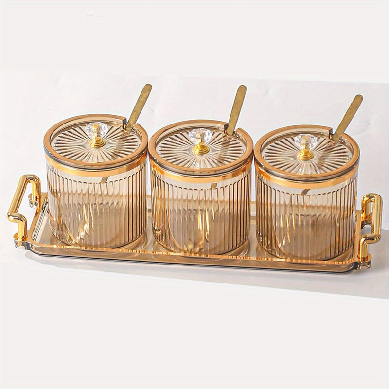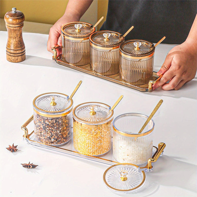 Conjunto de Condimentos Creativo para el Hogar y Cocina, Alta Belleza - 1 Bandeja con 3 Tarros y Cuchara