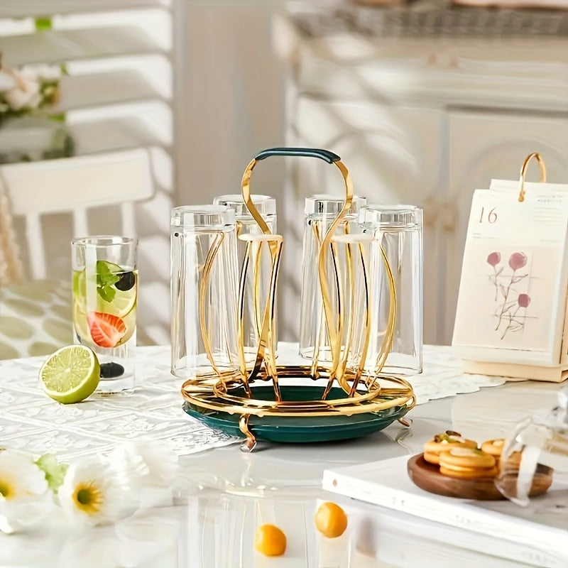 1 pieza, soporte de taza en forma de tambor europeo elegante - soporte de drenaje multifuncional de hierro dorado para almacenamiento de vasos y tazas de cocina, organizador de cocina | soporte de taza elegante | construcción de hierro