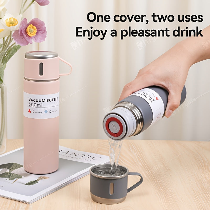 Juego de termos de acero inoxidable, taza térmica aislante de 500 ml/16.9 oz, mantiene bebidas frías o calientes, con taza adicional, para negocios, escuela u oficina