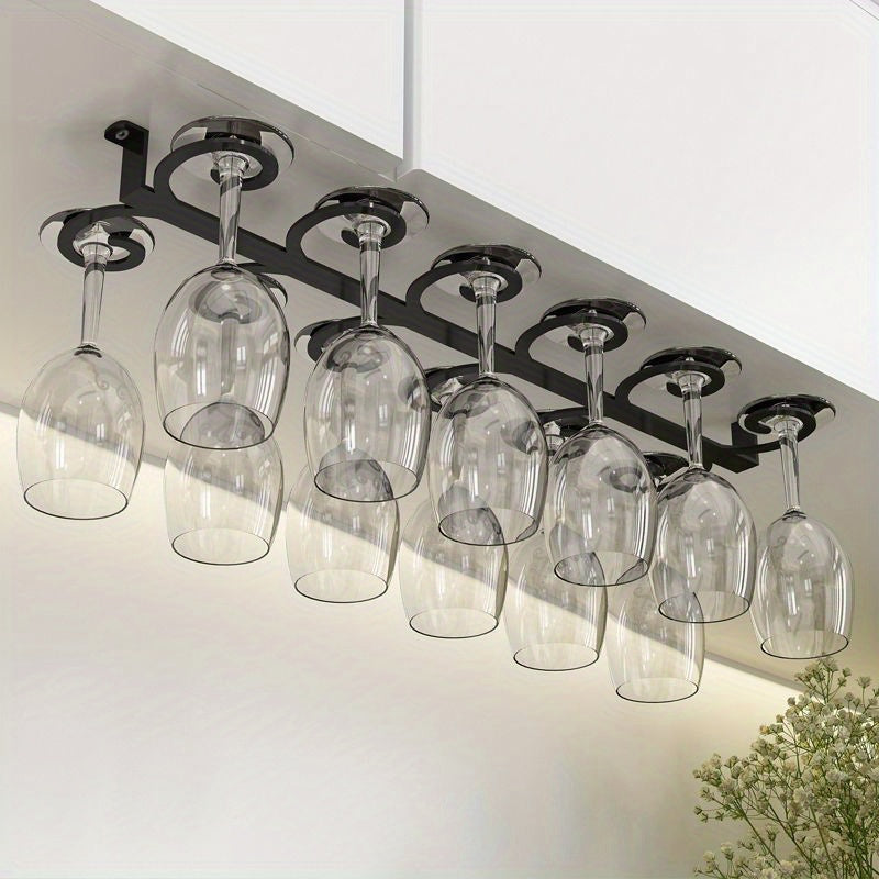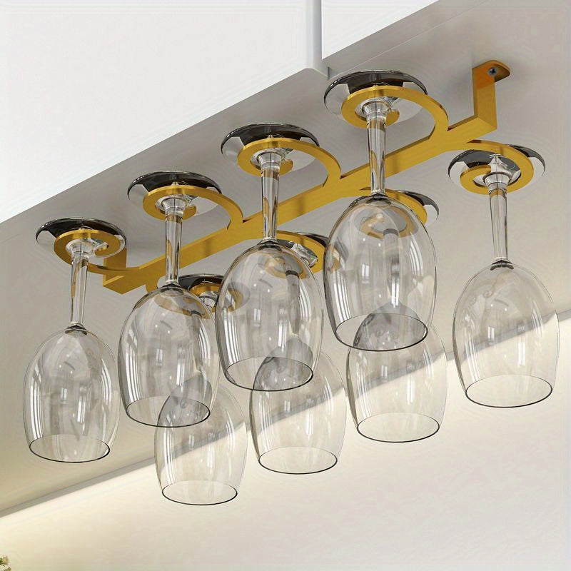Soporte de vino vintage - Soporte de pared moderno de hierro para vino tinto y elegantes vasos, diseño que ahorra espacio para sala de estar o cocina, organizador de cocina | Elegante soporte de metal | Construcción duradera de hierro, decoración de vino
