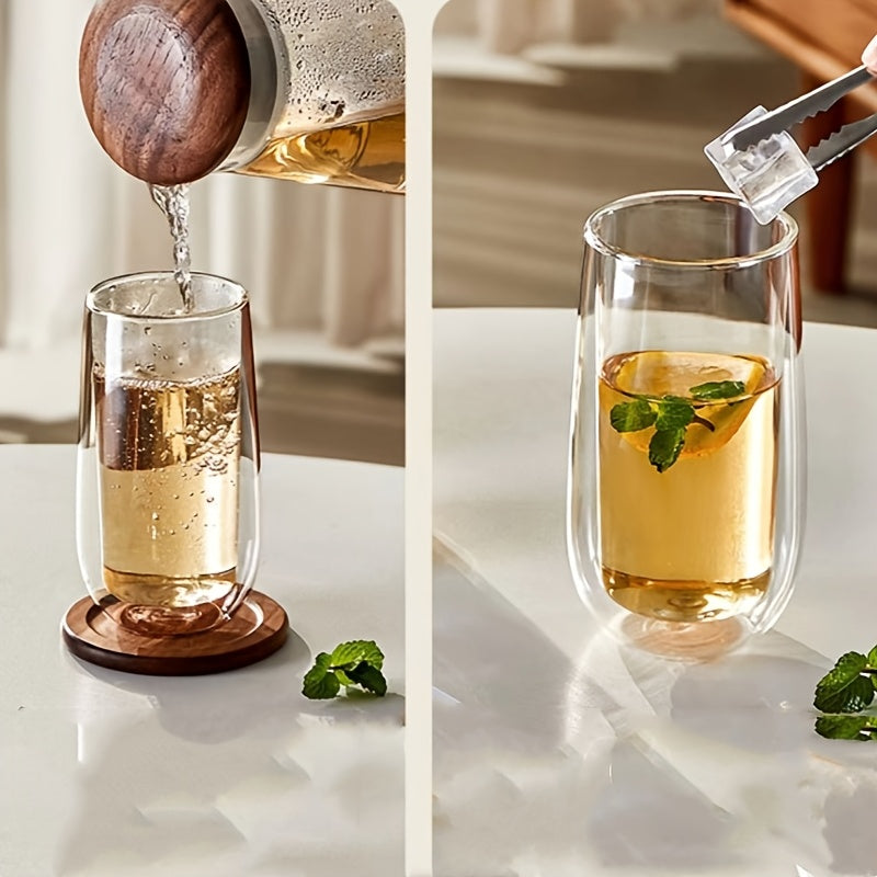 4/6 piezas Tazas de vidrio aislado de doble pared de borosilicato, sin plomo, reutilizables, redondas, seguras para congelador, multiusos, con seguridad para lavadora para uso en el hogar, vasos para leche y bebidas