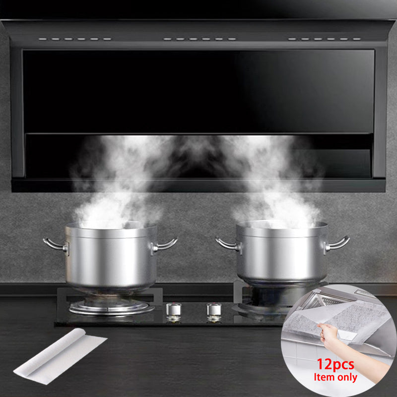 12 piezas de pantallas de filtro para campana de cocina - Alta absorción, fácil de instalar y reemplazar | Material de PE duradero, previene la acumulación de grasa | Ideal para extractores de humo de cocina doméstica, accesorios para campana de cocina