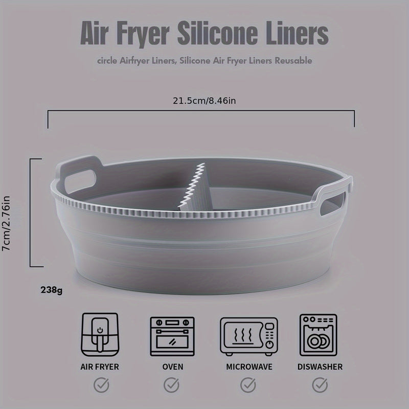 1pc Estera de Horno Reutilizable para Freidora de Aire, Redonda, Silicona, Grado Alimenticio, Plegable, Multifuncional, Antiadherente, con Almohadillas Divisorias para Freidora de Aire